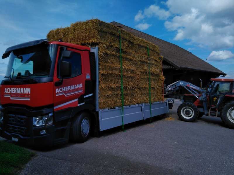 Wir kommen aus der Landwirtschaft und kennen die Abläufe auf dem Hof. Deshalb fahren wir flexibel, zuverlässig und einsatzbereit, auch kurzfristig. Unser grossvolumiges Fahrzeug ist für den Transport von Heu und Stroh in allen Ballenformaten geeignet – und unser Team denkt mit, auch wenn es mal eng wird.